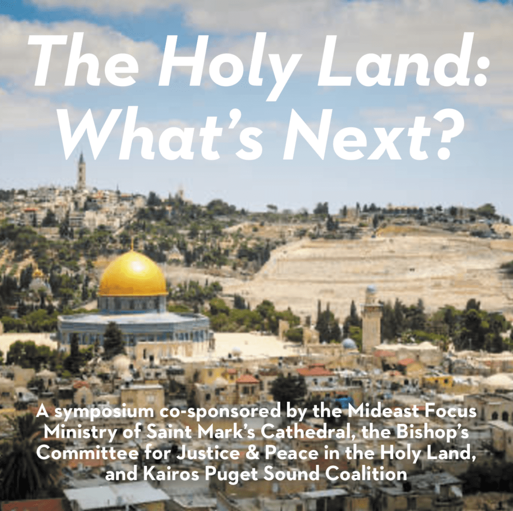 On September 24, the Mideast Focus Ministry of Saint Mark’s Cathedral in Seattle, the Bishop’s Committee for Justice & Peace in the Holy Land, and Kairos Puget Sound Coalition brought together prominent voices from different religious backgrounds to ask where the struggle to achieve justice and peace in the Israel-Palestine goes from here. Participants included: